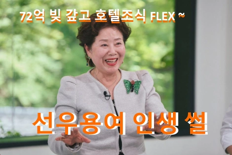 호텔 조식 플렉스로 화제가 되고 있지만 사실 매일 아침 호텔 조식을 먹는 것은 아니라고 합니다. 호텔 플렉스 생활 자체가 하나의 유튜브 부캐로서의 삶을 그린 것으로 호텔 조식을 먹는 것이 화제가 되면서 유튜브 구독자도 20만이 넘었고 조회수도 수백만이 되는 인기 유튜버로서 오히려 그 이상 벌고 있습니다. 여담으로 선우용여 선생님은 젊은 시절 남편 집 갚느라 영양실조로 쓰러지는 등 고생을 하셨습니다.