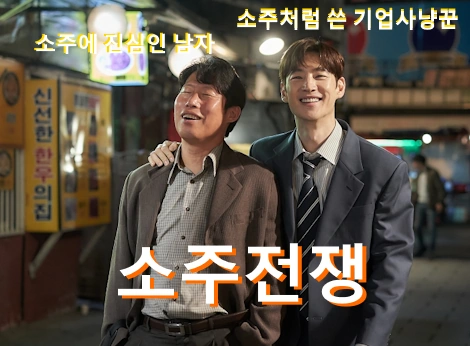 소주전쟁(2025)은 1997년 IMF 외환위기라는 한국 현대사의 격동기 속에서 국민 소주 브랜드 ‘국보소주’의 운명을 건 치열한 인수 전쟁을 그린 실화 기반 드라마입니다. 전국을 평정하던 국보소주는 갑작스러운 경제 위기로 자금난에 빠지고, 한평생 회사를 지켜온 재무이사 표종록(유해진)은 회생을 위해 글로벌 투자사 솔퀸의 인수 담당자 최인범(이제훈)에게 도움을 청합니다. 하지만 인범은 국보소주를 삼키려는 냉철한 전략가로, 자신의 진짜 목적을 숨긴 채 종록에게 접근합니다.