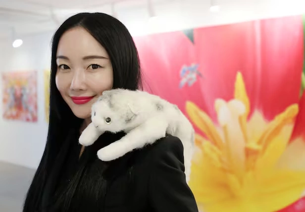 어깨위 고양이 퍼포먼스를 하는 미녀 예술가로만 알려져 있지만 해외에서 개인전까지 열 정도로 유명한 팝업 아티스트입니다.