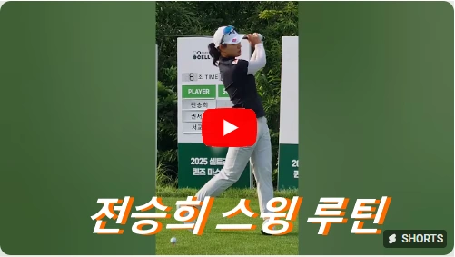 전승희 프로 골퍼는 특이하고 독창적인 스윙 루틴으로 주목받고 있는데 먼저 어드레스에 들어서기 전 빈스윙을 2~3회 반복하며 자신의 감각을 체크합니다. 이때 백스윙, 다운스윙 전환 시 하체에서 체중이동 스쿼트 동작을 강조하여 몸의 균형을 맞추고 힘 전달을 극대화합니다.