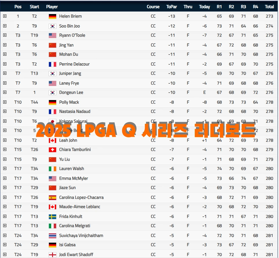 2025 LPGA LPGA 퀄리파잉 스쿨 리더보드 분석입니다.